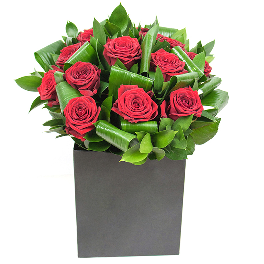 Bring charm and elegance to your home with our lovely bouquet, featuring vibrant red roses, lush aspidistra leaves, and delicate ruscus. Each flower is hand-picked to ensure superior freshness and beauty.