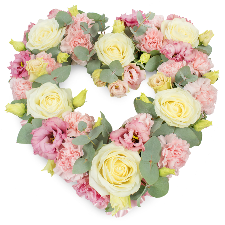 Show your deep emotions with our Heartfelt Remembrance Arrangement. Crafted with love, this luxurious bouquet features mesmerizing white roses, soft pink carnations, and delicate pink lisianthus complemented by aromatic eucalyptus leaves. Each bloom is expertly hand-selected to ensure premium quality and undeniable freshness. The design includes natural guard petals that shield the inner beauty of the roses during transit, so that once you peel them away, the true charm of the flowers is unveiled.
